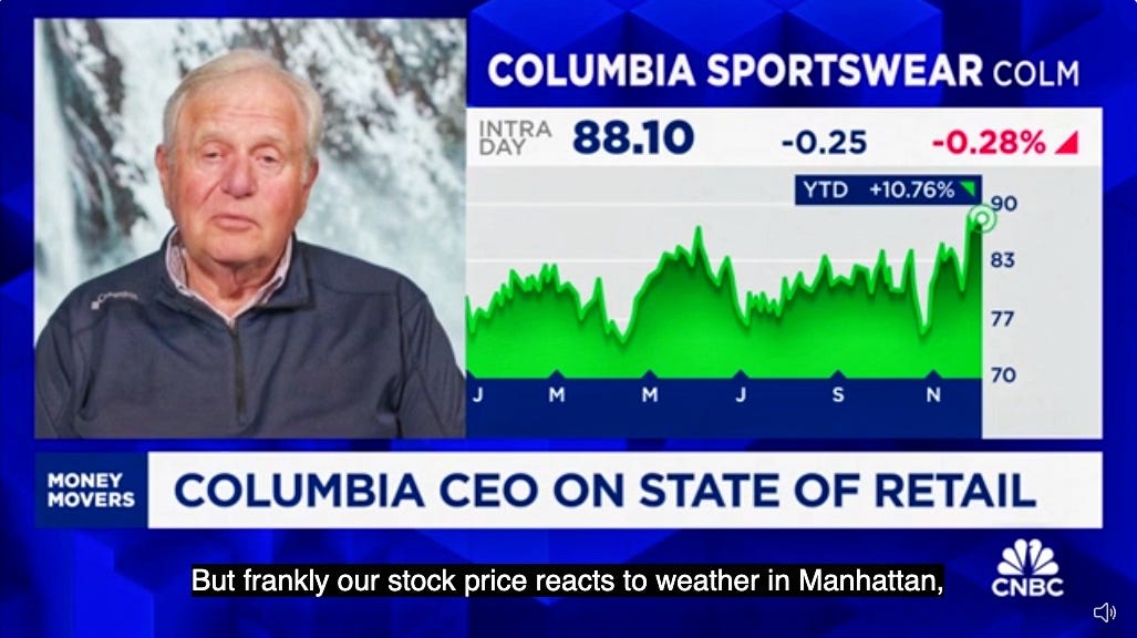 Columbia Sportswear CEO: Our stock price reacts to weather in Manhattan