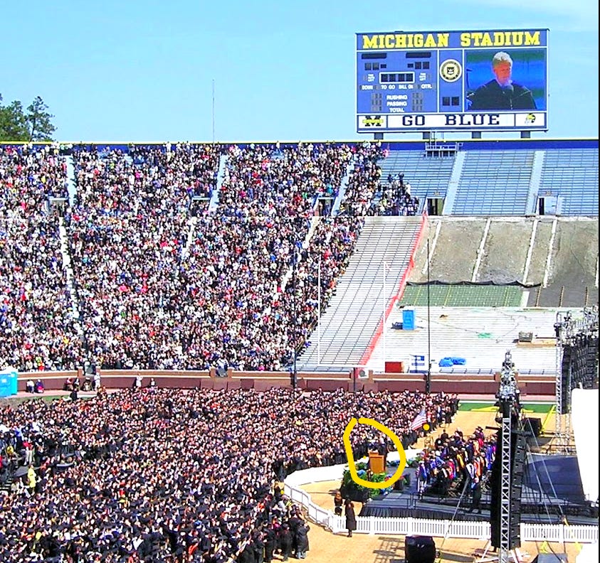 Four years later, Bill Clinton gave the commencement address in the Big House. It was cold — genuinely cold, the kind of May morning in Michigan that reminds you winter still has opinions. We didn’t mind. The mission was complete.