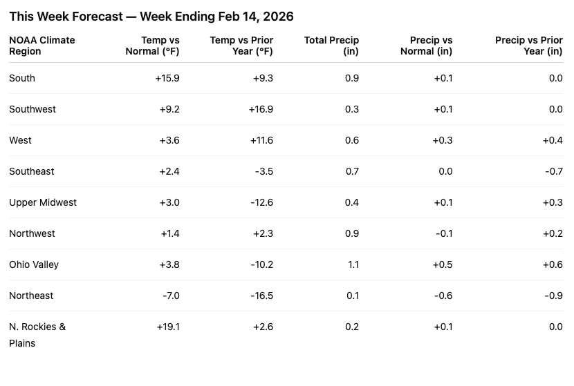 This Week Forecast — Week Ending Feb 14, 2026