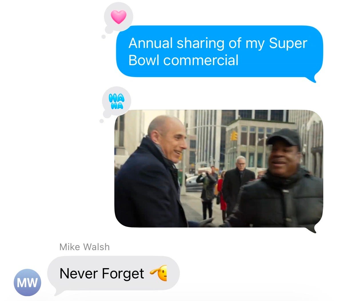 And as I’ve done every Super Bowl Sunday since 2015—ironically, the year the Seahawks lost to the Patriots—I shared with my now-adult kids my brief, accidental appearance in a Super Bowl commercial, a tradition they tolerate exactly once a year.