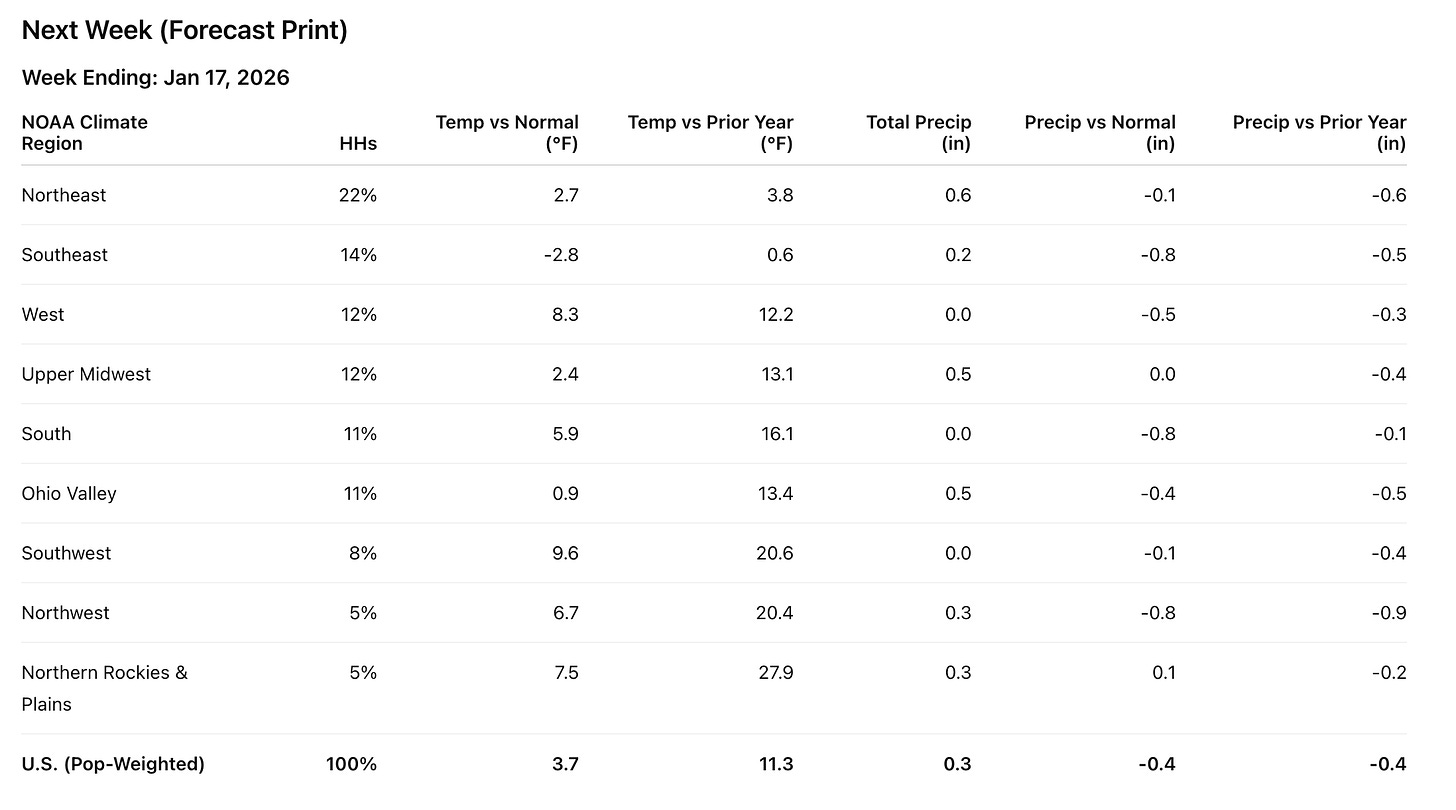 Next week keeps the thaw theme alive, with warmth returning in areas that typically anchor winter demand. Meanwhile, some northern markets may normalize, but the broader story is continuation, not a clean return to seasonal cold.