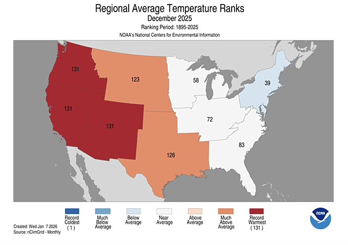 December 2025 ranked in the coldest third of all Decembers in 131 years of record across the Northeast’s core Macy’s and Bloomingdale’s markets. New York ranked 44th coldest. New Jersey 43rd. Massachusetts 42nd.