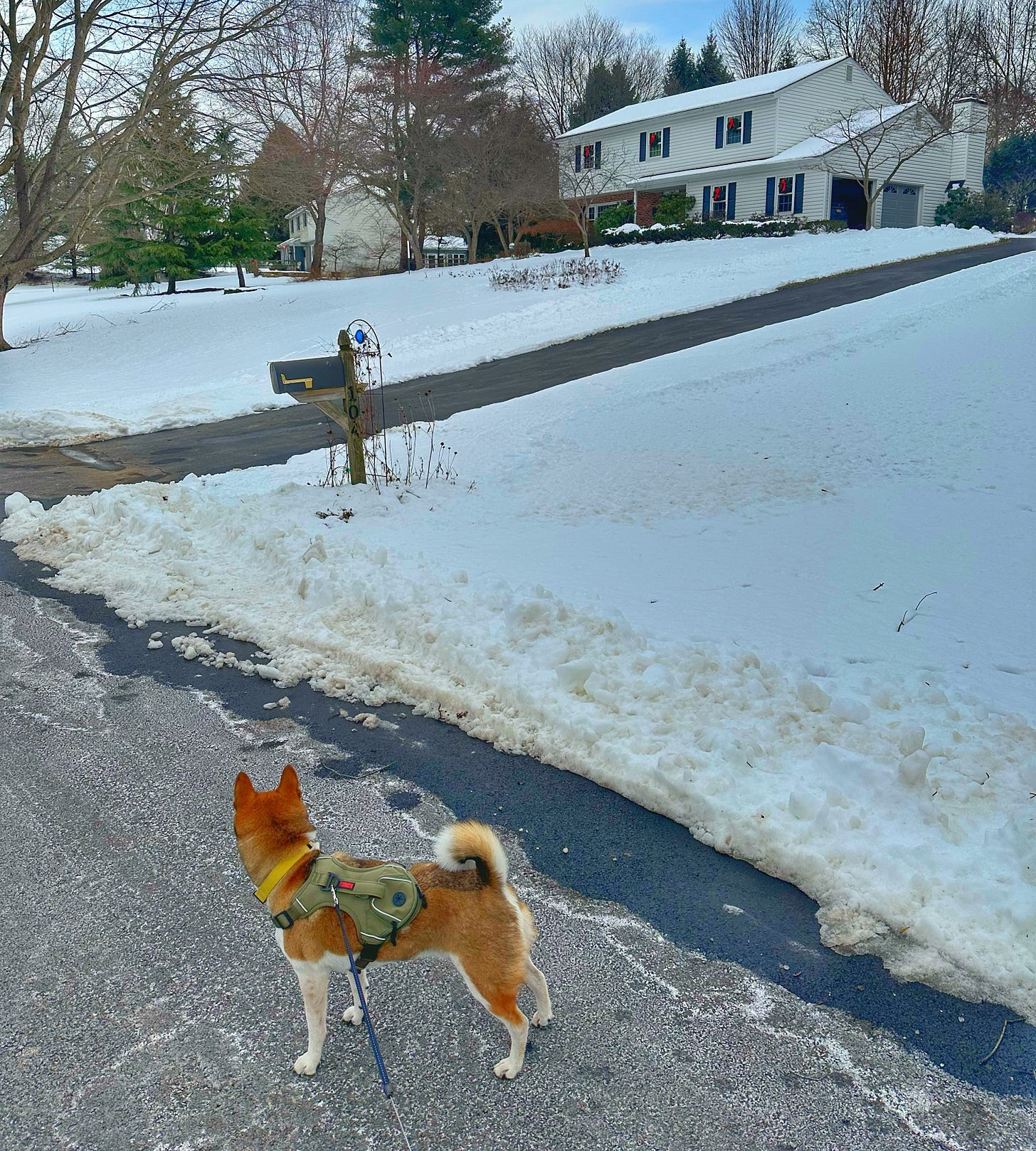 My hero image this morning is from a walk with my best pal Benji last week. A heavy, early Northeast snowfall forced us off the local park trails and into the middle of the street just to find traction.